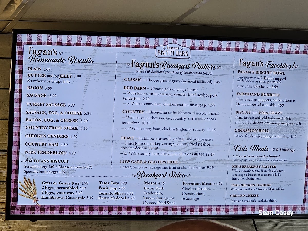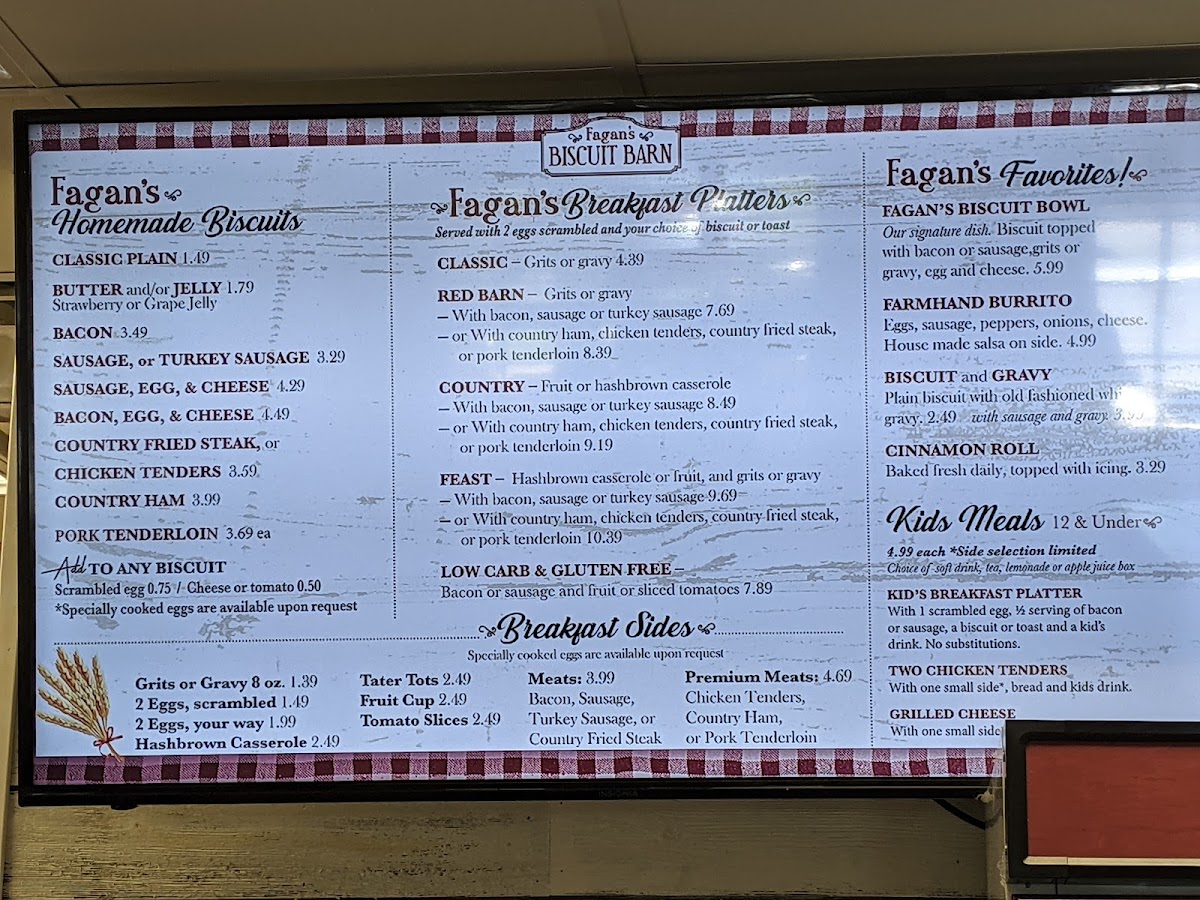 Feed The Well BBQ & Biscuit Barn (Formerly Fagan's Biscuit Barn) Menu